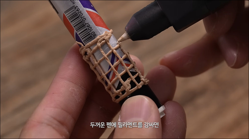 接著在製作水箭龜砲管時,則使用 3D 列印筆利用麥克筆筆桿的弧面來製作。