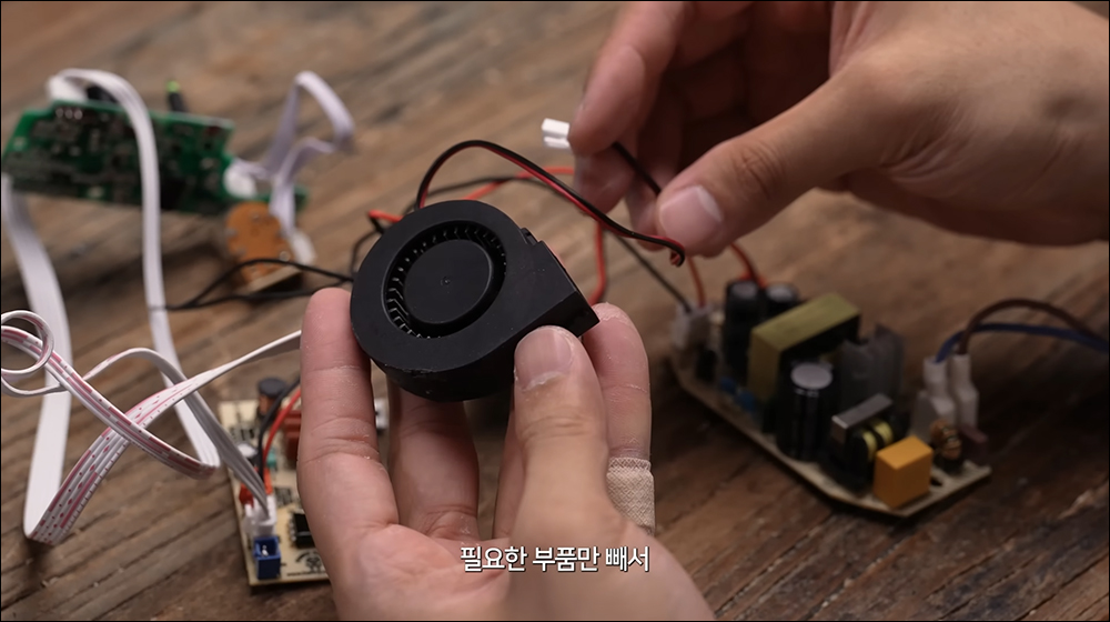 加濕器的零件通通拆除後,接著將加濕器的風扇安裝到水箭龜的機身上。