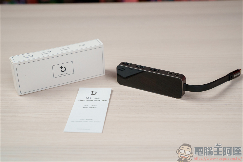 有沒有發現現在的筆電已經越來越少 Type-A 接孔了?自從筆電能 PD 充電後,有不少筆電出廠只配置一個 Type-A 接孔,或是乾脆不給,這對於一些需要外接滑鼠、鍵盤、USB 的人來說就相當不便。這時就得另外花筆錢購買集線器這類的設備來擴充孔位,相信這也是不少筆電使用者的痛點之一。這款 Dockcase 4合1 集線器 ( 以下簡稱 DPR42C ),具有 3 Type-A & 1 Type-C 的配置,同時還具有顯示螢幕的高科技,比起一般集線器的顏值好看不少: