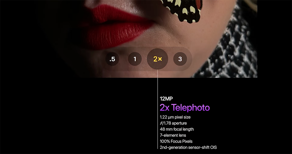 由於導入了對於裁切更為友善的更高解析度主相機,iPhone 也在主鏡頭的 1x 與望遠鏡頭的 3x 之間,新增了 2x 變焦按鈕,並支援 4K 畫質的望遠裁切錄影 – 雖然先前也能透過轉盤的方式切換到 2x(小編就超常這樣用),不過這應該是指在沒有額外數位變焦放大犧牲畫質的條件下達到的變焦效果。