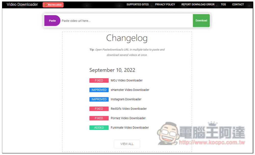 值得讚賞的是,這網站算是少數會持續更新的線上下載工具,首頁會隨時更新最新版本內容,像是修復了什麼問題、增進什麼下載能力。