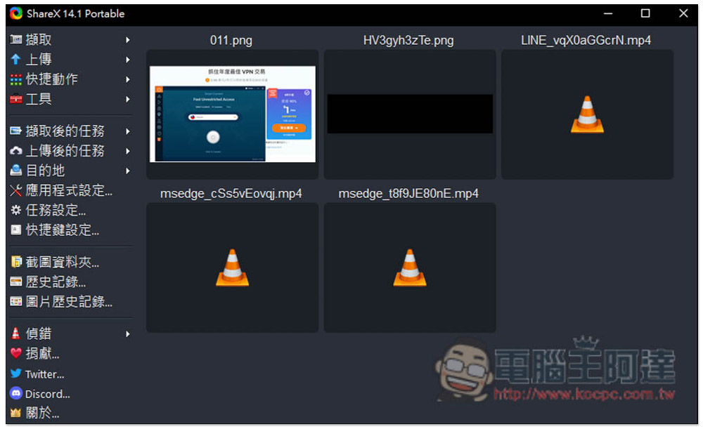 ShareX 是一款功能超級強大的截圖軟體,內建錄影程式功能,不過需要搭配 ffmpeg,因此首次使用會要求下載。錄影僅提供錄製螢幕,不支援視訊鏡頭,另外也只能手動圈選要錄的範圍。錄製完的影片、圖片可直接上傳到 imgur、Flickr、Google Photos 等雲端空間,這還蠻不錯的。