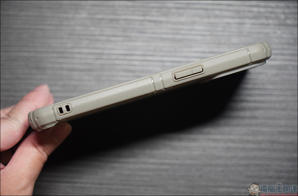 手機殼的開孔同樣精準,機身兩側的按鍵回饋感也十分靈巧好按,機身雙邊也有設計吊飾孔。