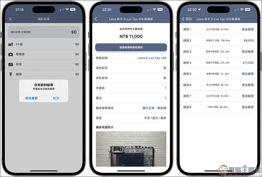 像是 iPhone 這類在二手市場較熱門的產品,很快就會有許多廠商陸續提供報價。各位不妨再送出估價單後先去做自己的事情,有新的報價將會推播通知。