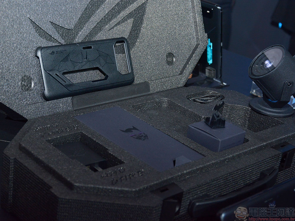 在週邊配件中,有蝙蝠俠浮雕的手提硬殼箱,裡面除了手機本體與充電器外,還加上蝙蝠俠浮雕保護背蓋、蝙蝠俠 SIM 卡針以及蝙蝠俠信號投射燈。你對蝙蝠俠的英雄夢, ROG Phone 6 幫你一次實現。