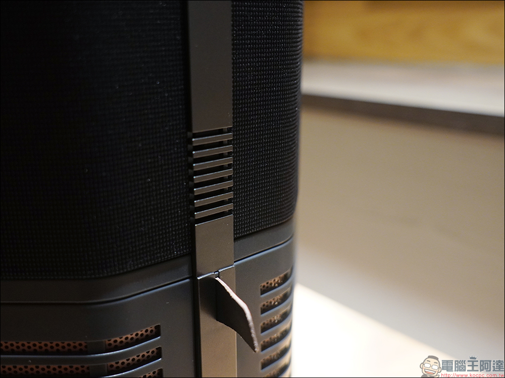 Acerpure 黑武士高效空氣清淨機的濾網門採用皮質的拉條,讓使用者可輕易將濾網門卸下。