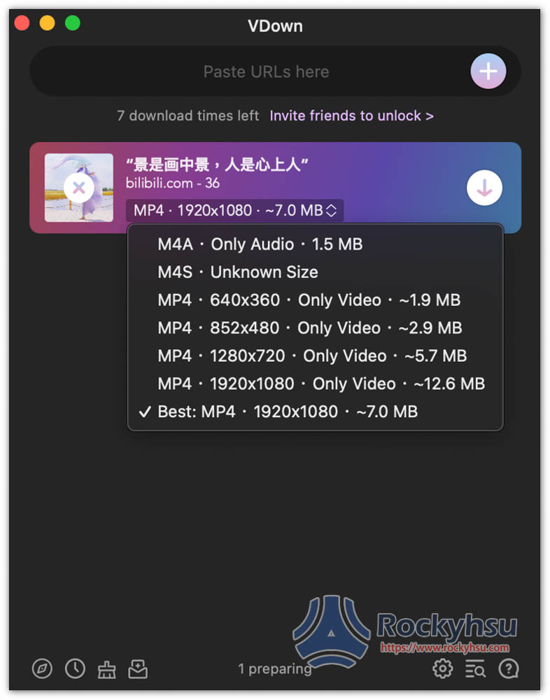 Mac 的線上影音下載工具不像 Windows 這麼多,而且大多需要付費,這篇要推薦的快下VDown 免費 App,不僅可以下載超過 900 個網站的影片,還提供 10 次免費次數,如果邀請朋友更能再額外獲得次數。懶得邀請的人,也能上網找找看 1.0.6 版本,據說這版本以前是完全免費。