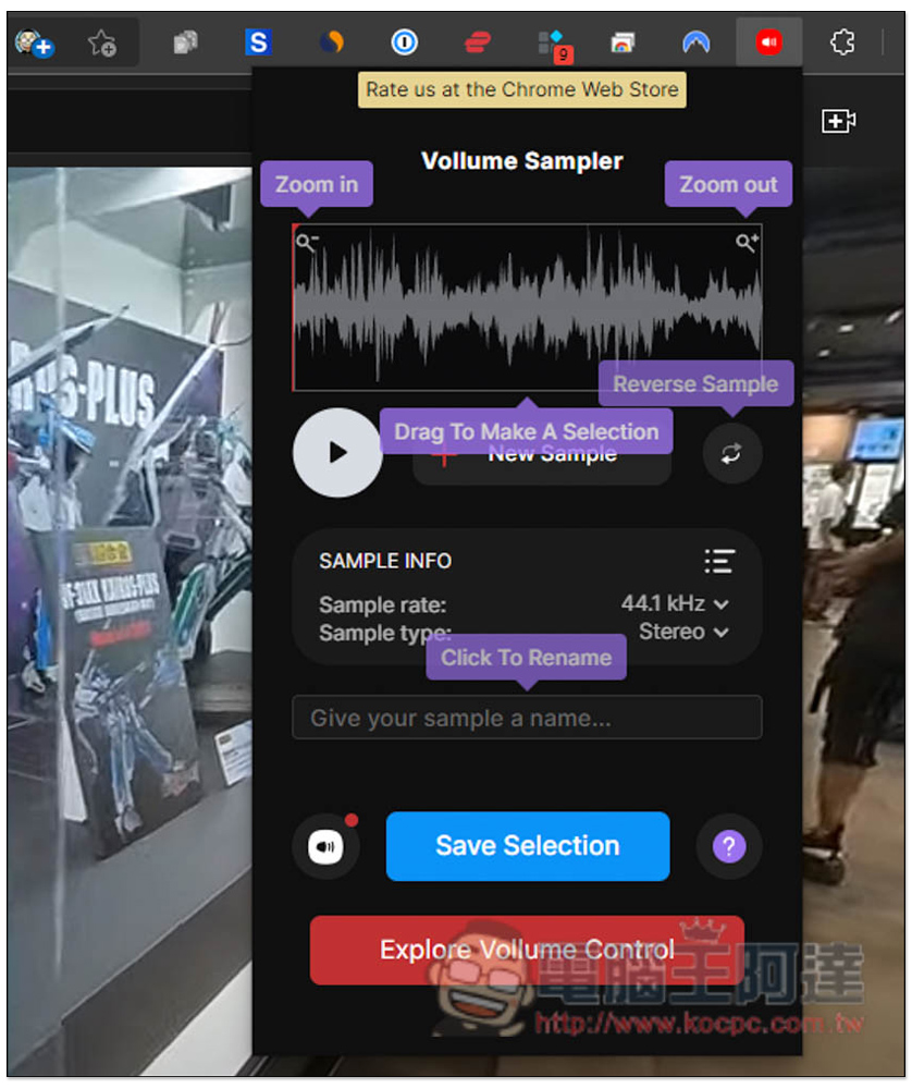 Vollume Sampler 可錄製 “網頁播放聲音” 的免費錄音擴充功能