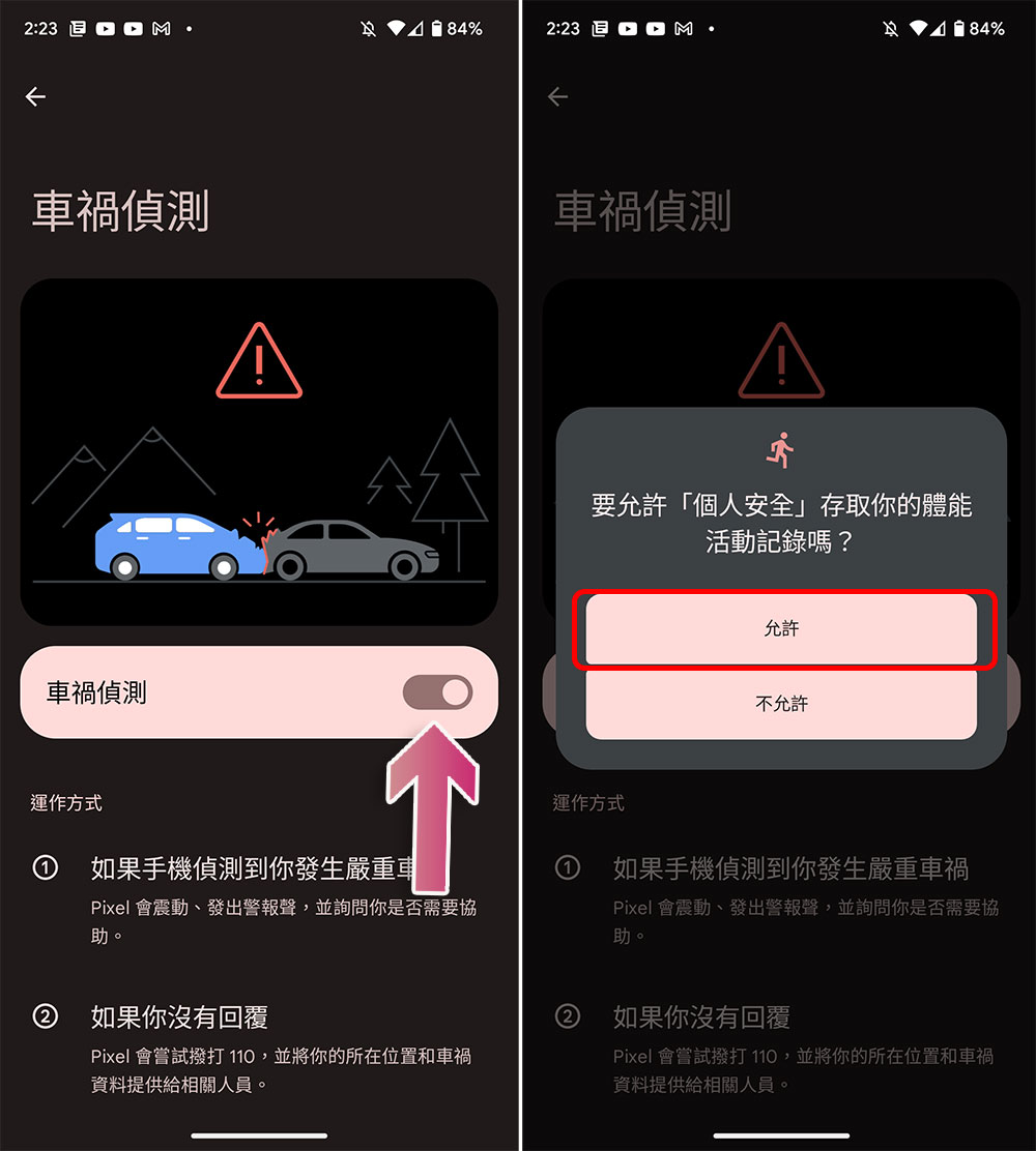 這邊要留意的是,就如同 Apple Watch 也無法保證每次車禍事故都能精準偵測紀錄一樣,Android 的車禍偵測也不是百分百準確的,所以最重要還是你自己要注意行車安全。