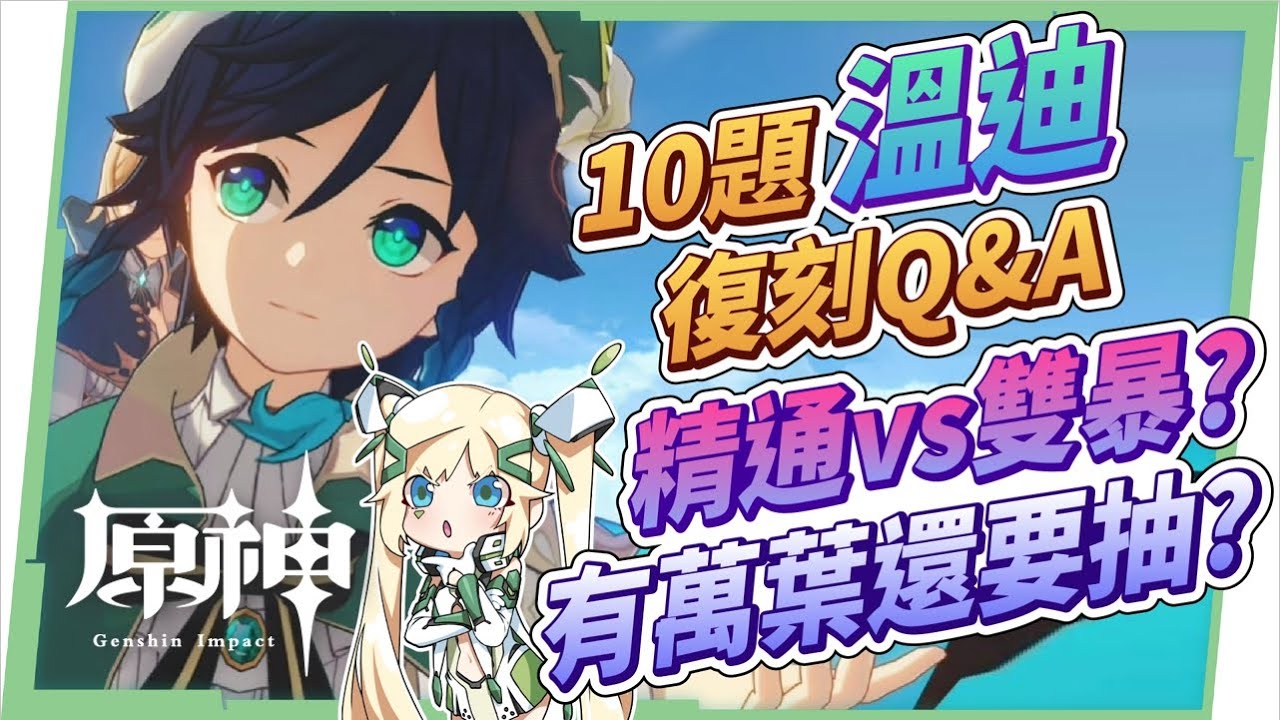 【原神】溫迪3.1復刻10題Q&A🌀▸有萬葉還要抽嗎?精通流、雙暴流?抽草神還是風神?沒有專武的替代?擴散染色手法?畢業面板怎麼看? ▹璐洛洛◃