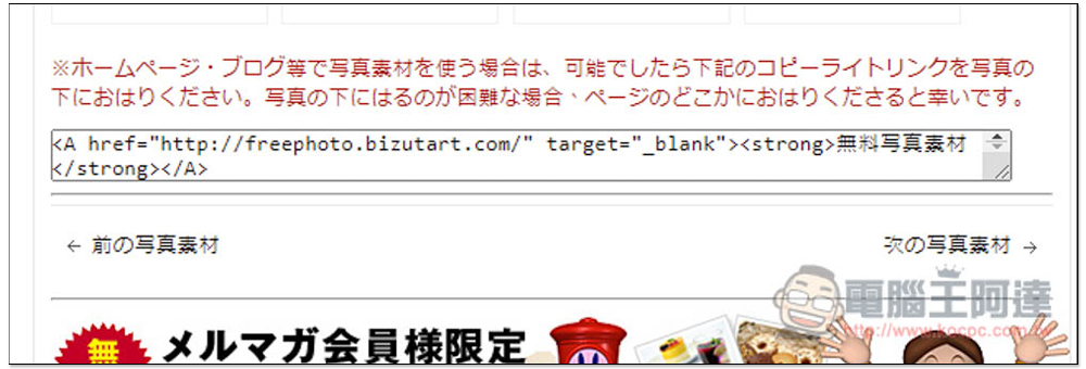 另外這網站有要求使用一定要附上來源,所以這點別忘了,照片下方有 Html 範例可以直接複製使用: