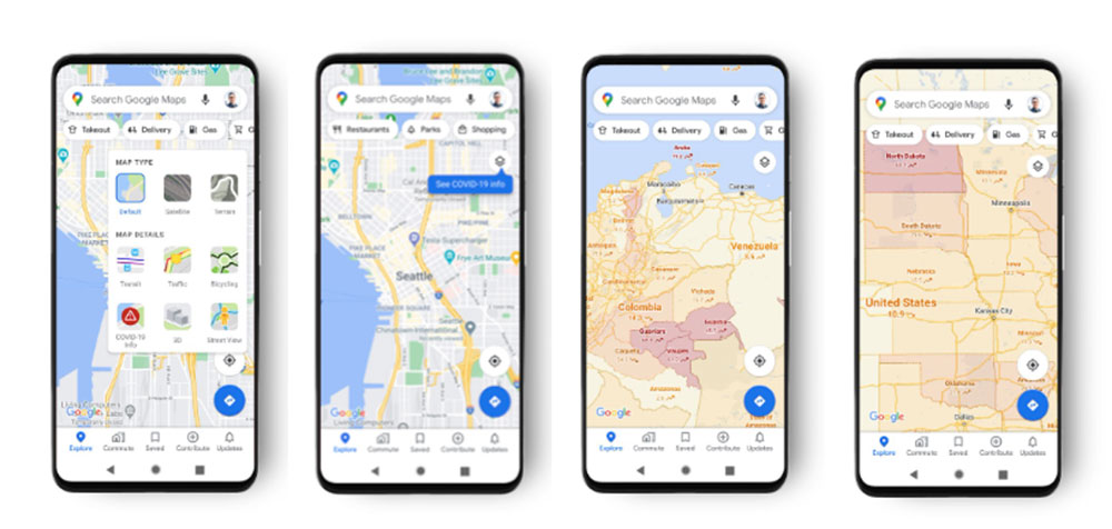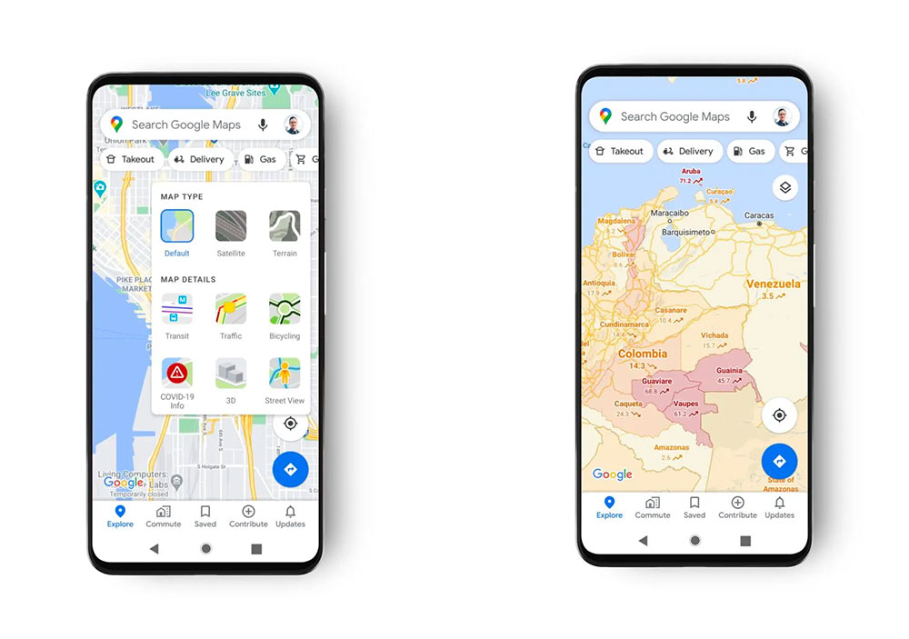 在 2020 年全球疫情升溫的時候,Google 在「地圖」服務網頁版與手機應用程式中添加了一個可以顯示各地區疫情趨勢的圖層,該圖層以特定地區 COVID-19 七天內的病例平均值來顯示哪個區塊的病毒傳播情況更嚴重。該功能推出的速度很快,並且在極短的時間內就可支援全球所有 Google 地圖上架的地區與國家,讓人們了解出行目的地或是自家所處位置的疫情嚴重程度。