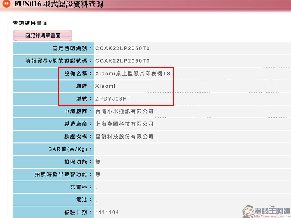 從 NCC 認證的附件資料,可以查詢到 Xiaomi桌上型照片印表機1S 的外觀照片,不同於中國版本的米家照片印表機1S 在機身正面印著米家 Logo ,台灣版本的 Logo 則為 Xiaomi(小米)。