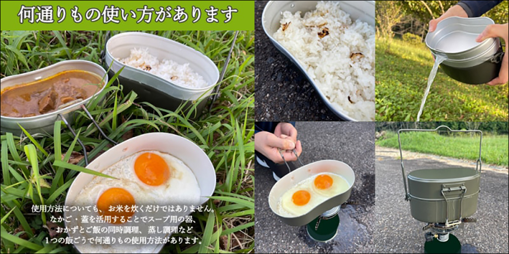 這位網友也提到另一款贈品,同樣有著自衛隊專用的風格。這組自衛隊規格的戰鬥便當盒,從材質、外觀造型、使用方法都與自衛隊相同,無論是炊飯或當成鍋具進行料理,都十分方便。