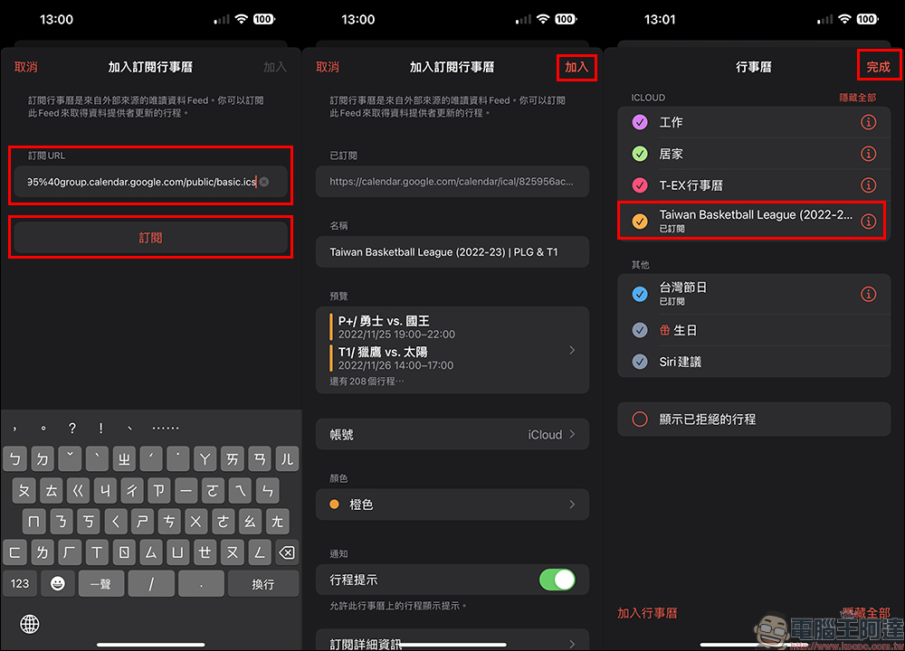 如何訂閱 2022-23 臺灣職籃(P.LEAGUE+&T1 League)賽程表到 Apple 行事曆?