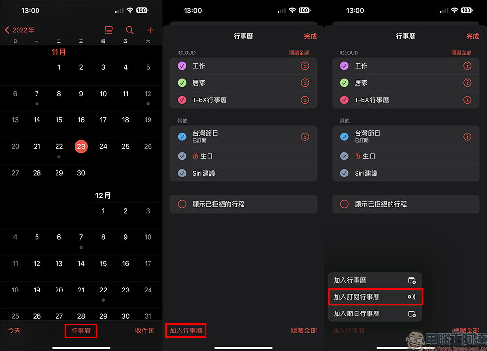 iPhone 或 iPad 用戶也能直接點選上方連結,將自動下載檔案並開啟行事曆 App 訂閱行事曆。