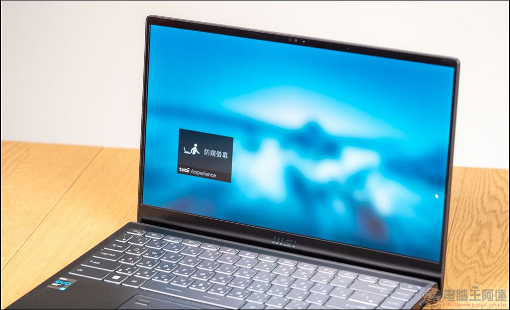 除了有非常快速的硬體規格外,在軟體上 MSI Prestige 14 Evo 獨家搭配了兩套針對於安全性的軟體:Tobii aware 隱私防護軟體以及Tile筆電追蹤功能:
