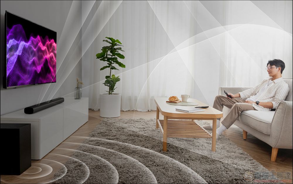 想要在家中打造出電影院的震撼澎湃音效,不單只是呈現聲音左右的移動,而是要營造出四面八方的包覆音場、環境音細節,並且同時支援主流 Dolby Atmos,那麼具備真實天空聲道Soundbar就會是最合適的選擇,天空聲道主要是由5+1單體設計組成,支援杜比全景聲(Dolby Atmos),其中兩顆單體是朝上發聲,將聲波垂直打到天花板,搭配前方三顆往前發聲的單體,組成環繞式的天空聲道,達到更紮實的全景聲空間效果