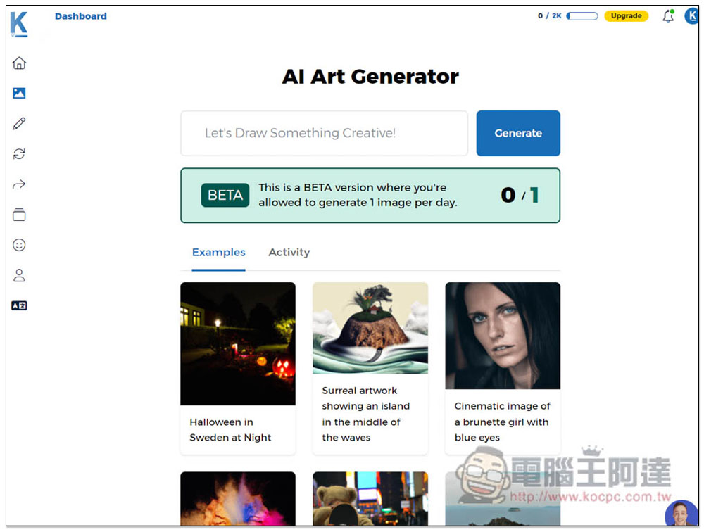 AI Art 產生器可以用文字產生圖片,而且支援中文,不過目前還是 Beta 版,每天只能產生一張圖片: