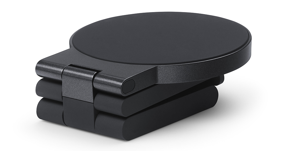 就官方的描述,這個可折疊支架將可提供從直角向下約 25 度的角度與前後小幅度移動調整(應該是怕超廣角會被螢幕遮擋)。與 MacBook 筆電版本相比,除了支援的螢幕厚度在桌機版明顯較寬裕外,更可以看到這個版本還可以支援直接鎖在一般的 1/4″ 腳架使用。是說不知道這樣的支架能不能兼用在 MacBook 上吼?感覺桌機版本的泛用性更高,應該會更吸引人選擇吧。