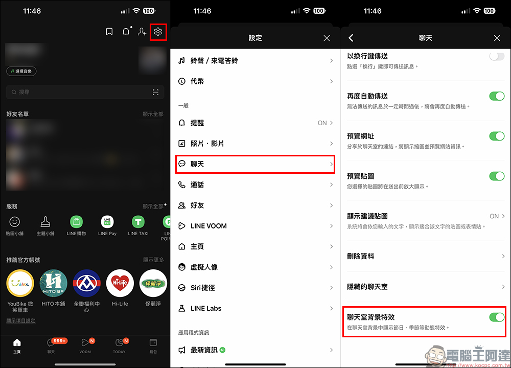 如果不想要在上述期間看到 LINE 聊天室背景下著雪,各位可以前往 LINE 設定,找到「聊天」頁面將「聊天室背景特效」關閉。反之,如果到時候發現明明在活動期間, LINE 版本也更新至支援特效的版本卻沒發現下雪,除了可先將 LINE App 重開,也可到此設定頁面確認「聊天室背景特效」是否在開啟狀態。
