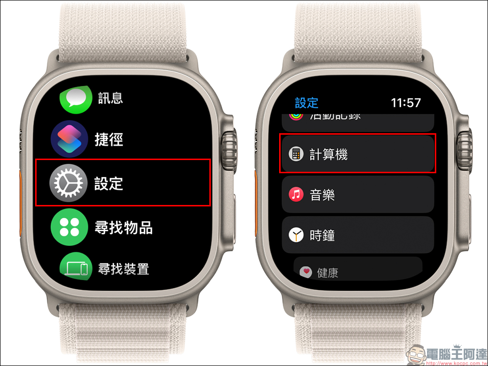 要開啟這功能前,先在 Apple Watch 開啟「設定」App,接著再設定頁面中選擇「計算機」。務必記得要先到設定調整這功能,並非直接開啟計算機 App 唷!