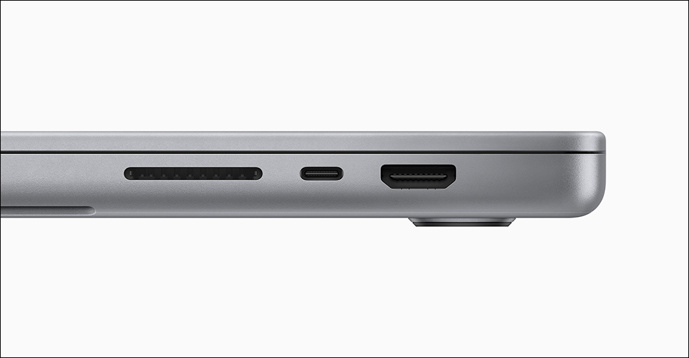 全新 MacBook Pro針對連線功能再進化,不僅支援 Wi-Fi 6E 帶來更快速的無線連接功能,讓速度比上一代快達兩倍。更首次支援 8K 顯示器的 HDMI 埠,可支援 60Hz 8K 顯示器或 240Hz 4K 顯示器。另外, MacBook Pro 配備 3 個 Thunderbolt 4、一個 SDXC 卡插槽、MagSafe 3 充電埠,以及支援高抗組耳機的 3.5mm 耳機插孔。