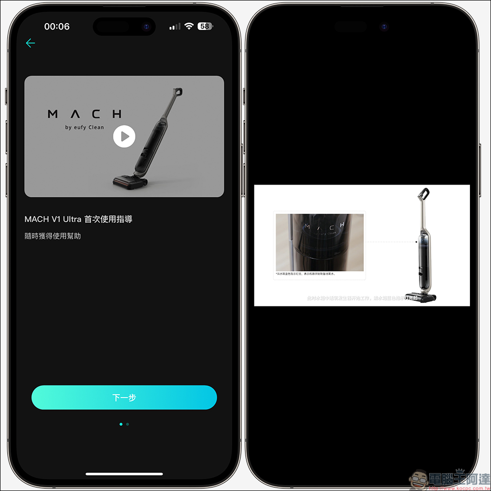 此外,如果不想翻閱說明書, App 更貼心使用動畫引導用戶操作各項功能,透過手機便能一目僚然省下慢慢摸索的時間。eufy MACH 馬赫無線蒸氣洗地機開箱實測|業界第一 110°C 蒸氣、6 合 1 功能,一次帶走地面所有髒污! - 電腦王阿達