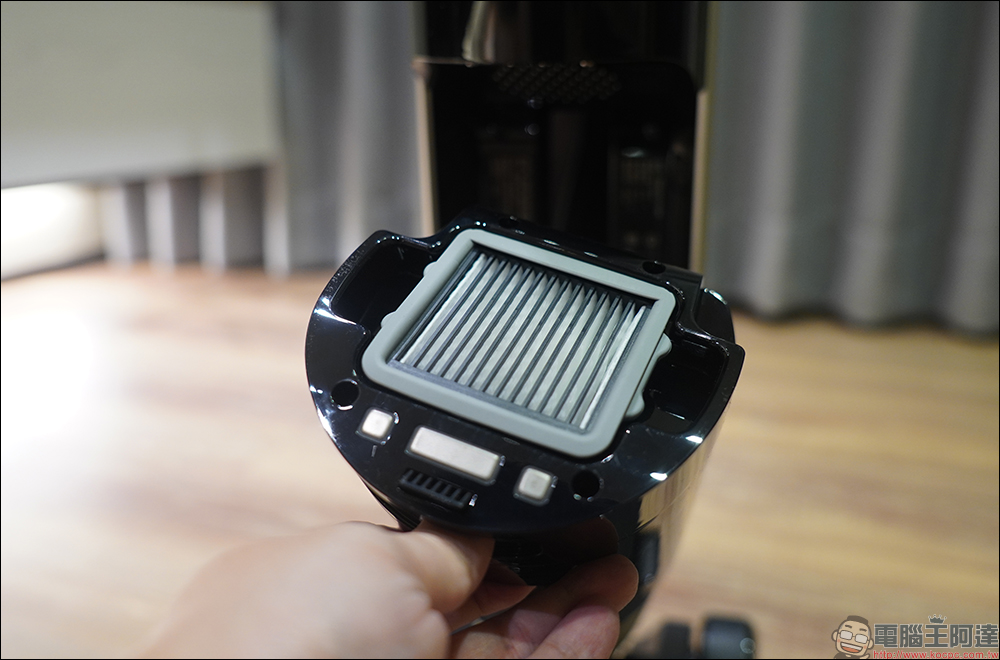 手把頂端設有直覺顯示的 LCD 智慧手錶式面板,能清楚顯示各種清潔模式和電量,用戶也能透過直覺的功能鍵切換模式、檢視濾網和滾刷的狀態。