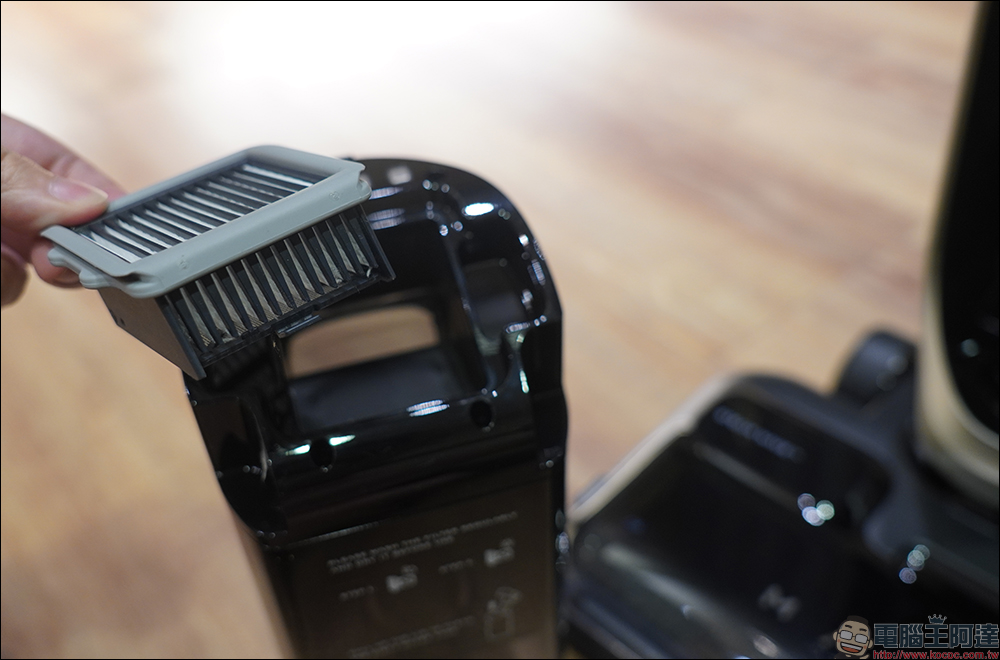 污水箱上方設有高效濾網,能將部分吸入的灰塵髒污有效阻隔,確保清潔過程維持高性能狀態。