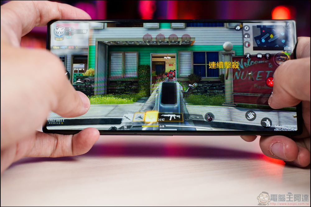 玩手遊時機身橫置後左右兩側邊角與紅魔 LOGO 也都可變換顏色的光效,讓你的 B 格瞬間提升不少,電動可以沒贏,氣勢先高人一等再說: