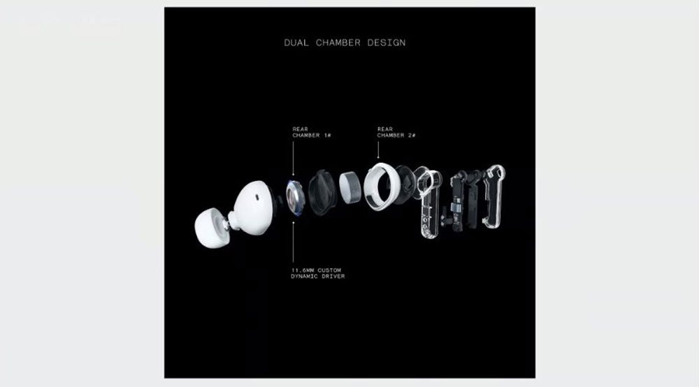 Ear (2) 經高解析音訊認證,提供最真實的原聲音樂體驗,讓使用者彷如身處錄音室之中;耳機配備 LHDC 5.0 轉碼器技術,以 1Mbps 的速度傳輸高達 24 bit/192 kHz 頻率的聲音,呈現原汁原味的音色細節。耳機採用全新雙腔體設計,重新打造 11.6mm 可自訂式驅動單體,以聚氨酯和石墨烯混合製成的訂製款覆膜,讓低頻率聲音更純淨、更強勁,高頻率聲音更纖細。同時,獨特的雙腔體設計可使聲音透過喇叭傳入耳朵時的空間更大、氣流更順暢、音質更清晰。