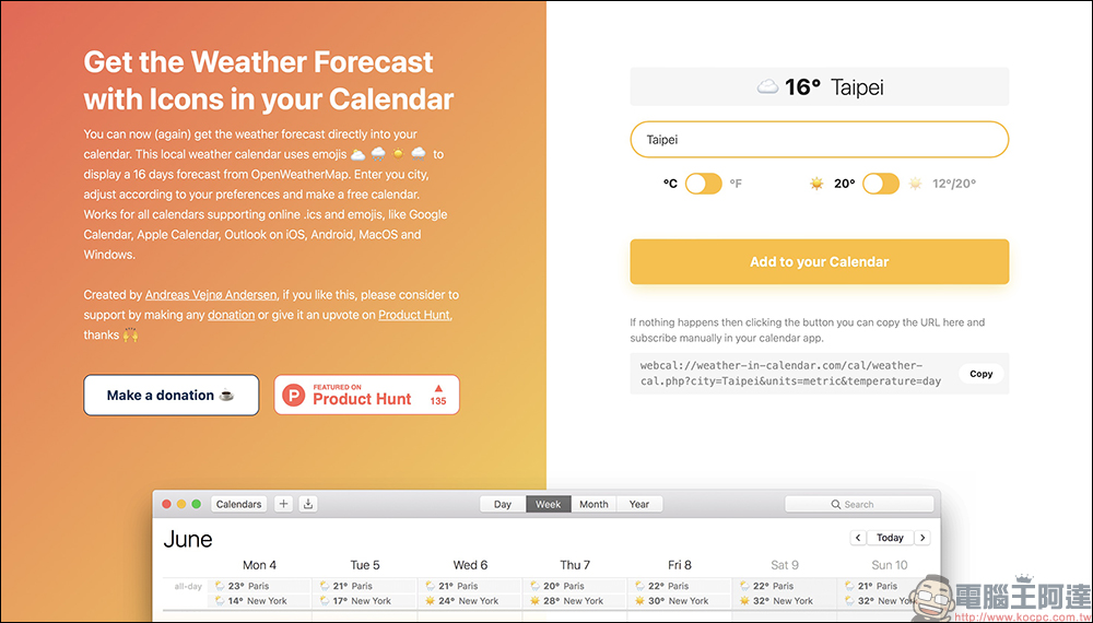 Weather in calendar:免費又輕鬆為 Google 日曆、Apple 行事曆加入每日天氣的好用工具(教學)