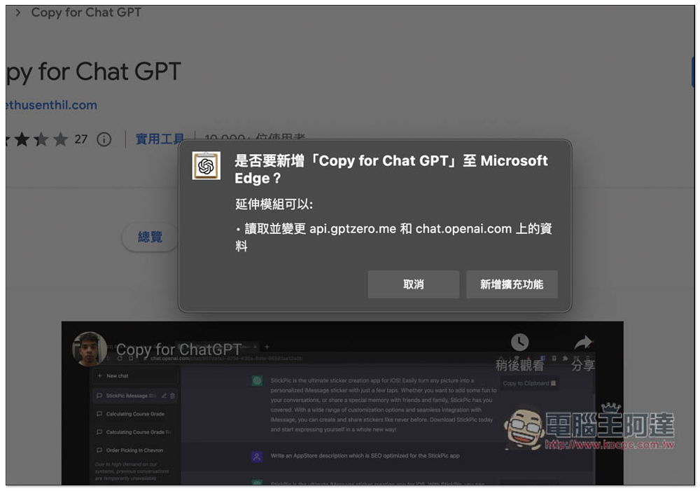 Copy for Chat GPT 是 Chorme 的擴充功能,Microsoft Edge 也能安裝,下面會以 Edge 為範例。