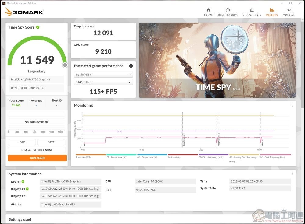 Time Spy(2K)的顯卡分數是12091: