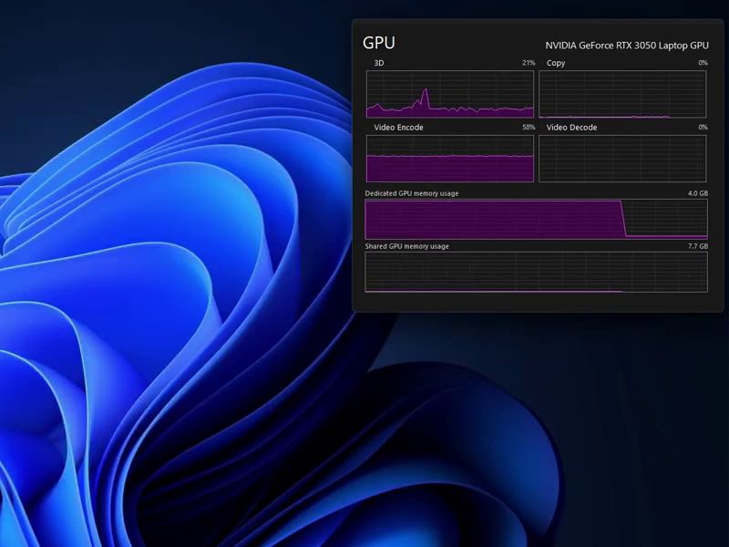 最後的虛擬機器開機,就不需要過多言語去說明了。大費周章的結果是讓虛擬機器中的瘦身版 Win11,擁有類似於在普通環境中的執行狀態,但客端虛擬主機順暢的代價是,本機端的顯示卡各項運作狀態都處於相當高的程度,有如進行著 3A 級遊戲大作般。雖說這樣的騷操作對一些玩家來說很有個性,但實用性似乎比想像中的低,最關鍵的一點是,買條 M.2 SSD 它不香嗎,明明現在的 SSD 又快空間又多,價格也非常親切。實在是沒有什麼。