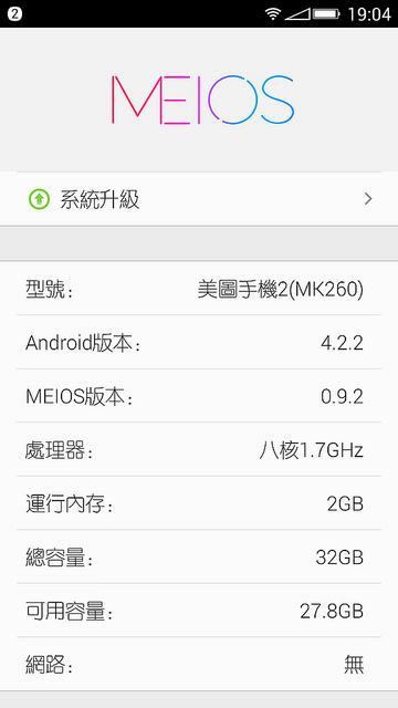 - 系統:MEIOS 1.0(基於 Android4.2 深度定制)
