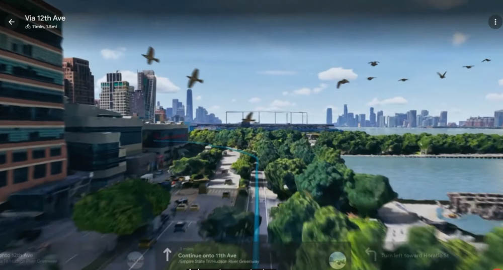 Google 地圖部分將加入全新「Immersive View 沉浸式地圖」功能,使用電腦視覺和 AI 將數十億張街景和航拍圖像融合在一起,建立出這個豐富的數位世界,這還蠻酷的,進行導航前可以先查看這段路線的數位街景: