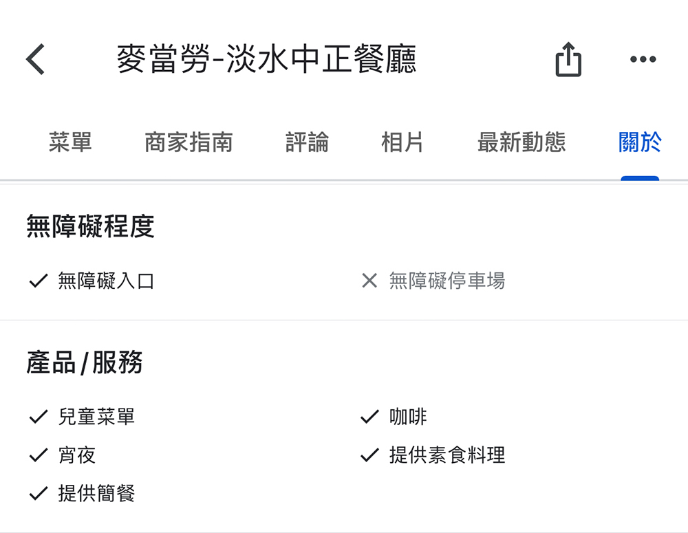 如此一來,行動不便的人士與家人前往時,將無需另外到設定啟動設定,即可透過地點景點的標示,確認是否有輪椅無障礙設施;還能點進地點詳細資料裡,確認「無障礙程度」提前知道如有沒有無障礙入口、無障礙停車場等的資訊。