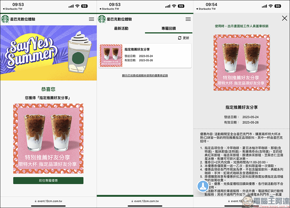 星巴克 SAY YES SUMMER! 數位體驗飲料買一送一(即日起~6/11)
