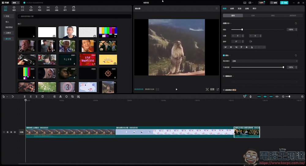 有在用剪映的人就知道,比起其他的剪輯軟體來說,自帶海量的素材是他一大特色之一,不管是音效、轉場、背景、梗圖影片、貼紙…等,這些都能直接在剪映上套用,讓你省去很多找素材的時間。