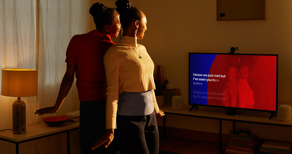 加入了 iPhone 的相機之後,Apple TV 開唱也將同步在特定歌曲裡,提供一邊歡唱還能在歌詞旁看到自己出現在畫面裡的特殊視訊濾鏡效果 – 就… 有一種拍 MV 的感覺囉(誤)。此外,總是讓許多人在客廳尋尋覓覓的 Siri Remote 遙控器,也確認在本次的更新後支援尋找功能(終於!)。