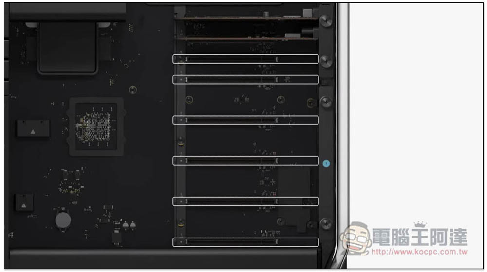 簡單來說,就是晶片架構問題,所以新款 Mac Pro 即便有 6 個 PCIe 插槽,也無法接顯卡。除了這個限制,M2 Ultra 也是 192GB 統一記憶體配置,而且 RAM 直接焊接在晶片裡,沒辦法增加,不像 Intel 版的 Mac Pro 可以升級到最高 1.5TB RAM: