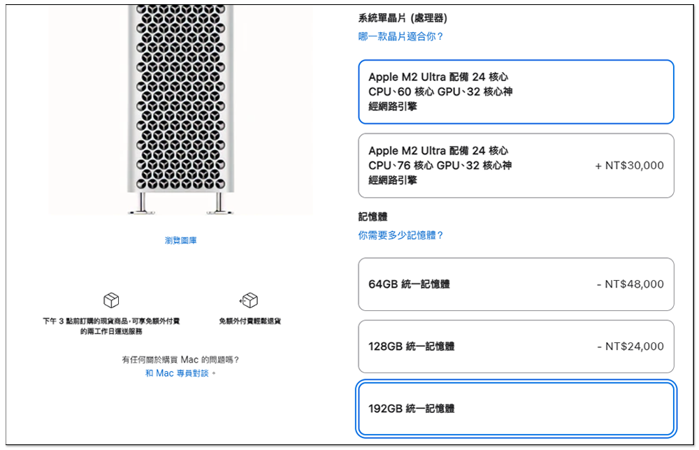 M2 Ultra 的效能很強,是目前 Apple Silicon 系列中最強的一款晶片,這是無庸置疑的,而且不只是 CPU,GPU 也相當猛,幾天前就有實測數據顯示僅落後 RTX 4080 約 10%。不過 Mac Pro 和 Mac Studio 都有提供 M2 Ultra 的選項,兩者價格差非常多,就起價來說至少差了 1 倍,也因此對於有興趣入手 M2 Ultra Mac 的用戶來說,應該都會思考到底要選哪一台比較好。