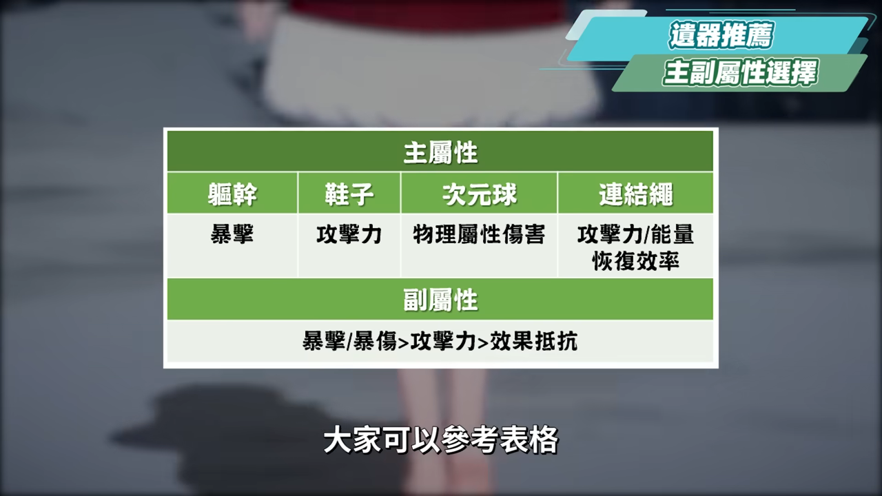 若是比較需要追求終結技的施放速度,可以考慮在連結繩的部分優先穿戴能量恢復效率主屬性的。
