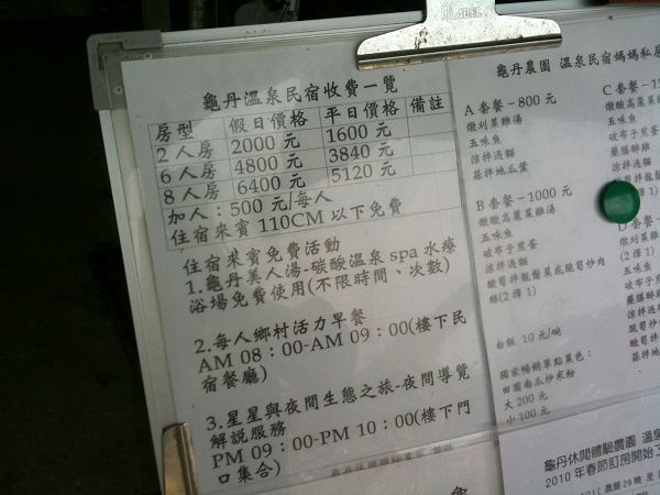 在龜丹那邊果然不出意料之外的完全沒有手機訊號(中華電信),不過老闆有接無線網路,但卻是壞的所以我也順邊當義工將其修復所以在那邊兩天還不算與世隔絕,這算是優點之一,另外洗溫泉真的蠻爽快的,兩天下來泡了三趟也算夠本了,但缺點是蒼蠅真的很多有潔癖的朋友要有心理準備。