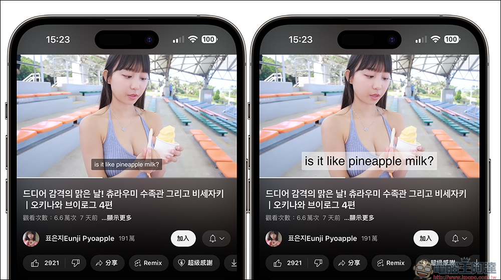 設定完成後,就讓我們來比較一下同一段 YouTube 影片在開啟 CC 字幕後,預設字幕的大小和自訂調整後的差別吧!可以經過這簡單的設定,使用者就能選擇更大、更小的字幕大小,樣式也可以經過調整讓字幕背景減少影響到影片本身。