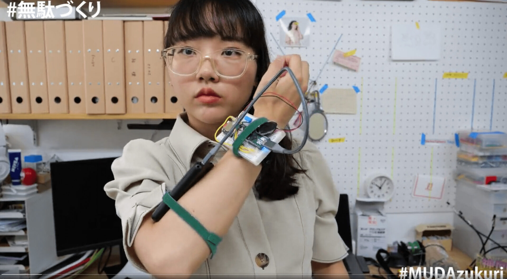 覺得洗碗太無聊,發明出一款不防水發出刮唱片聲音的機器。(不防水到底怎麼拿來洗碗??),可以聽聽聲音,真的不會越聽心情越差嗎?•¤•。本來以為已經很不可思議,藤原 麻里菜居然還發明了更多腦洞大開的奇耙發明。