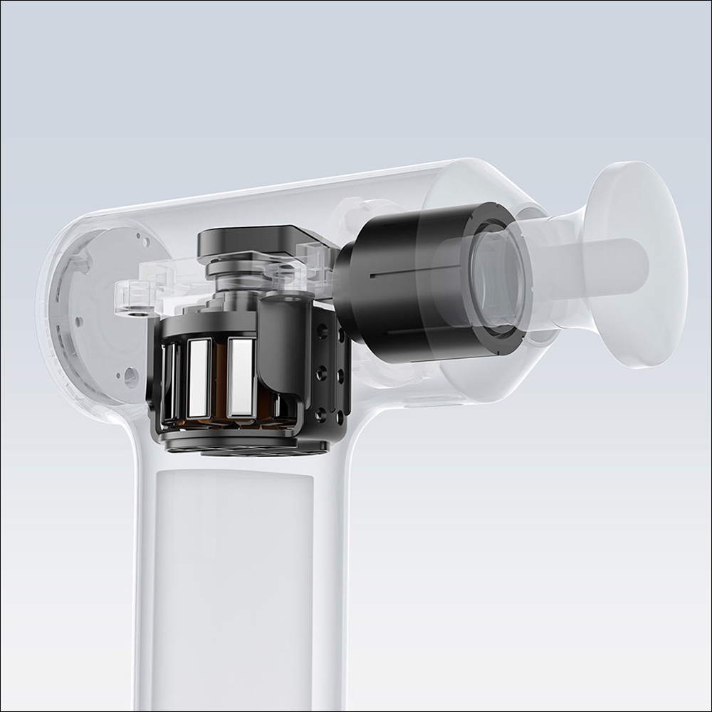 米家迷你筋膜槍2C 搭載無刷輕音電機,搭配矽膠減振降噪設計,運作時最低僅 30dB(A)。