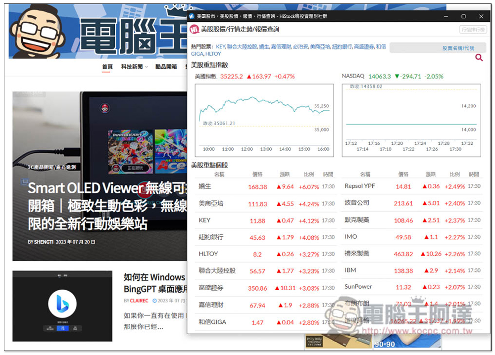 有些人工作或用電腦時,可能會一邊看股票的即時報價,這時也能用這擴充功能,將即時報價的區域獨立出來:
